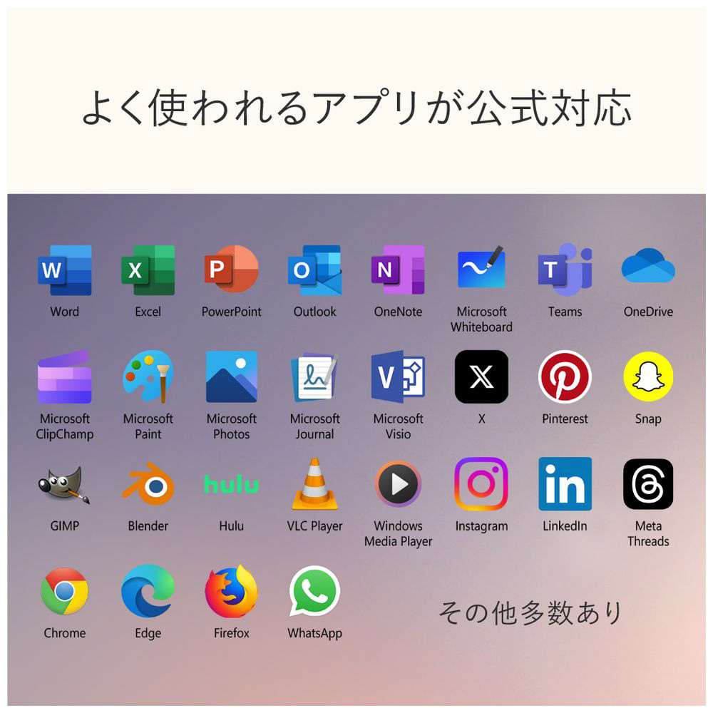 Windows 11 Home(Arm版OS)※Windows on ARMに関してはMicrosoftサポートページのWindows Arm ベースの PC に関する FAQをご覧ください。