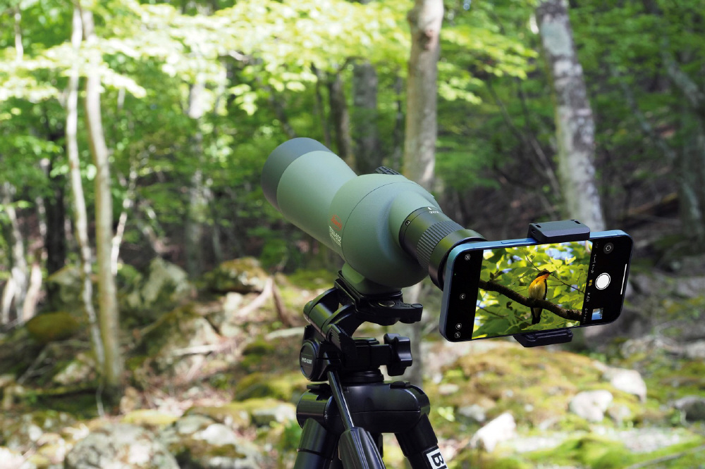 コーワ双眼鏡やスポッティングスコープに各社のスマートフォンを装着し望遠撮影するためのユニバーサルフォトアダプターです。