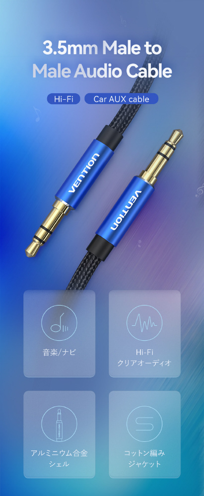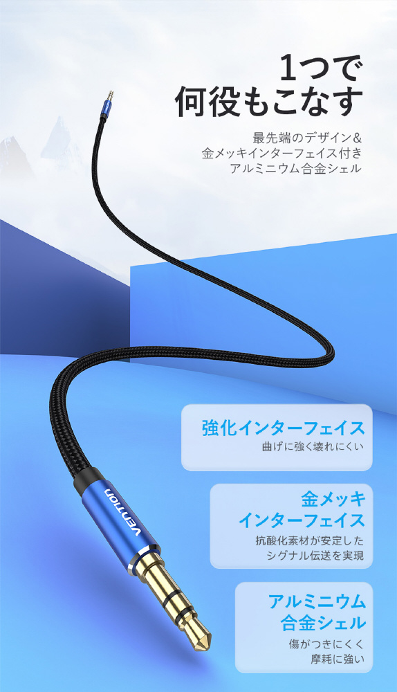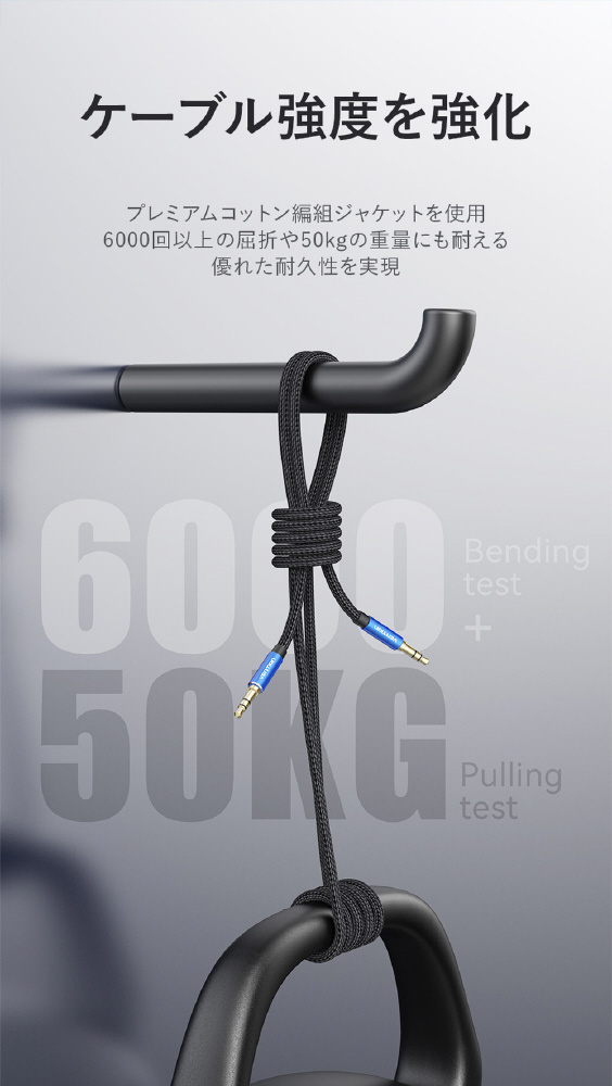 Hi-Fi オーディオ品質で、電子音やオーディオノイズにさようなら。最先端のデザイン&金メッキインターフェイス付きアルミニウム合金シェル。プレミアムコットン編組ジャケットを使用。6000回以上の屈折や50kgの重量にも耐える優れた耐久性を実現。