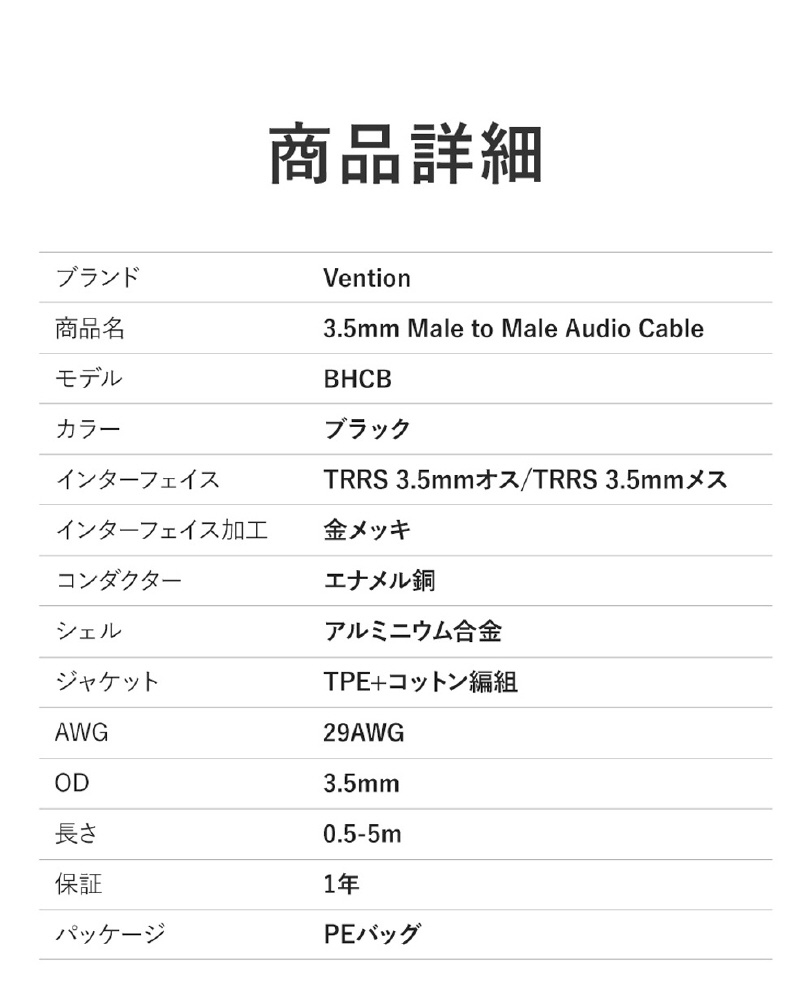 インターフェイス:TRRS 3.5mmオス/TRRS 3.5mmメス