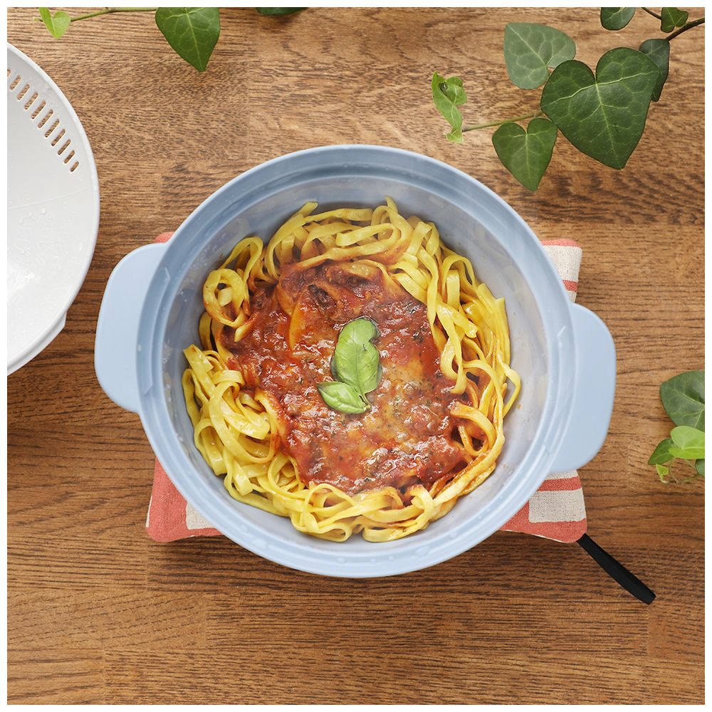 レンジで簡単調理!鍋、ラーメン、炊き込みご飯など様々な料理が手軽に作れるコンパクトサイズの鍋です。