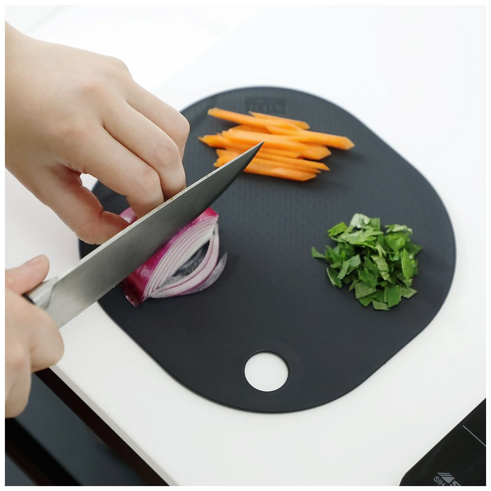 丸型と四角型の利点を組み合わせた、使い勝手の良いミニサイズのまな板です。