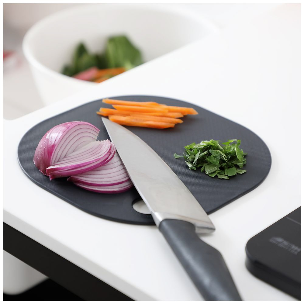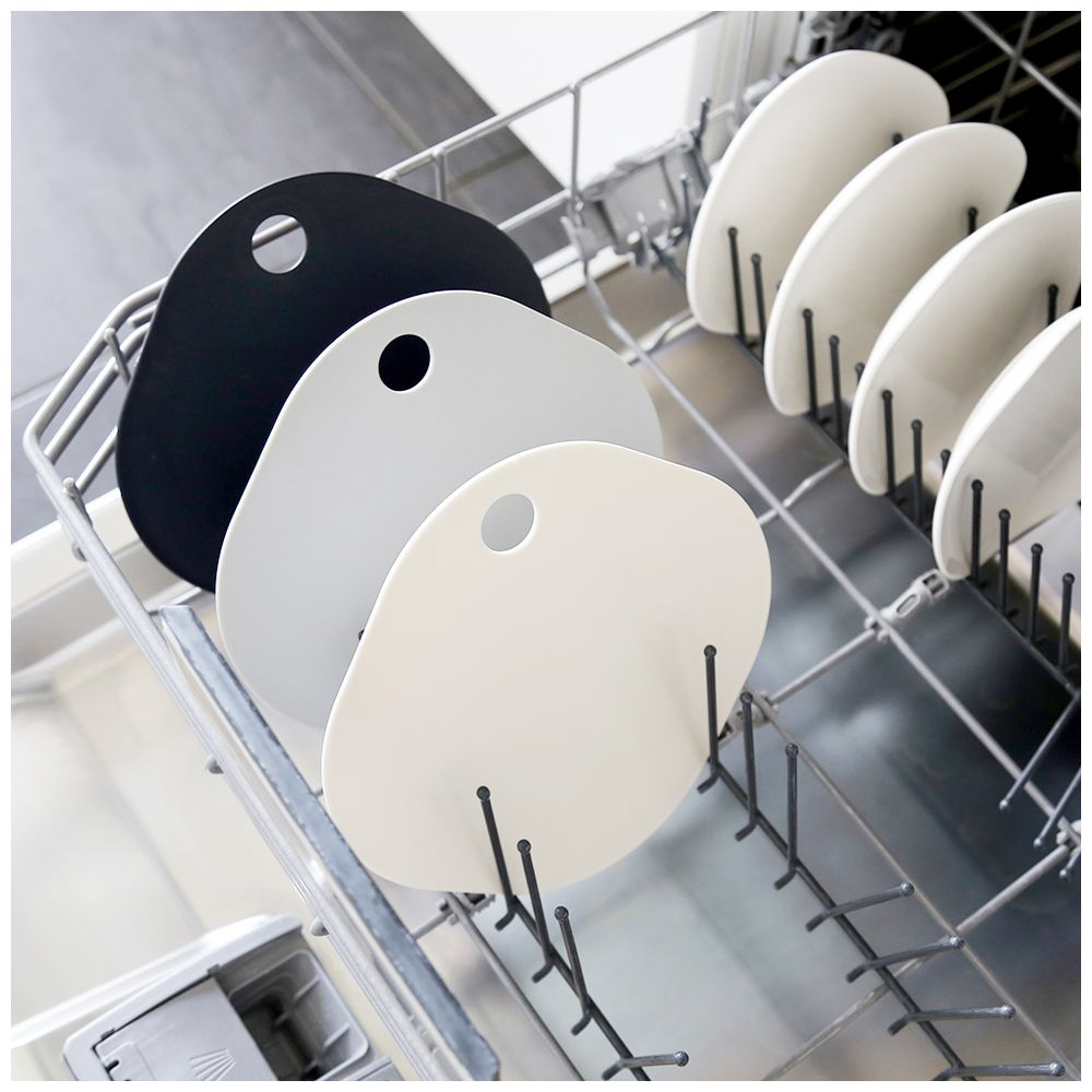 使い勝手の良いミニサイズのまな板。丸型と四角型の利点を兼ね備え、軽くて丈夫、食洗機対応。抗菌加工済で、おしゃれな3色展開です。
