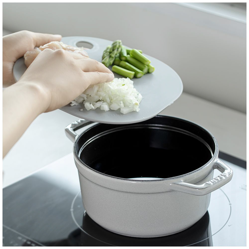 食材をカットしながらくるくる回せる丸型の利便性と、調理器具への移し替えが容易な四角型の利便性を兼ね備えています。