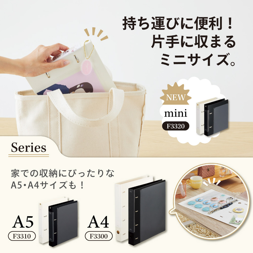 お気に入りのコレクションをまとめて保管できるファイル。持ち歩きやすく本棚にも収納しやすいミニサイズ。