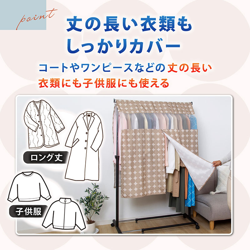 ハンガーラックに掛けた衣類をホコリから守る、洗えるハンガーラックカバー。