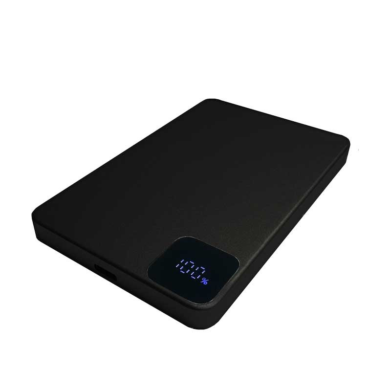 超薄型アルミ製マグセーフモバイルバッテリー ブラック 残量が分かり易いデジタル%表示
