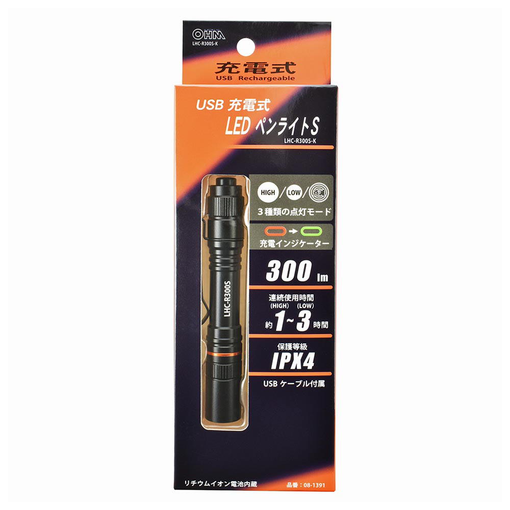 ■ 光束:約300 lm(ルーメン)※HIGHモード、満充電時