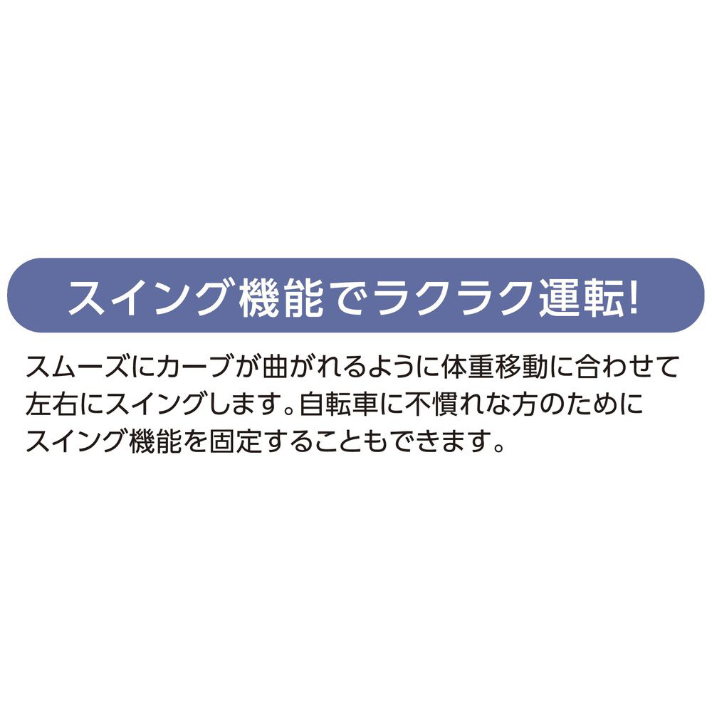 スムーズにカーブが曲がれるように体重移動に合わせて左右にスイングします。※不慣れな方のために機能を固定することもできます。