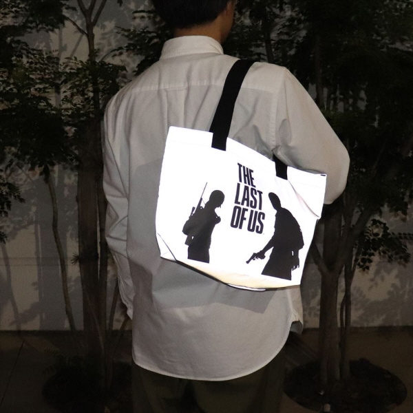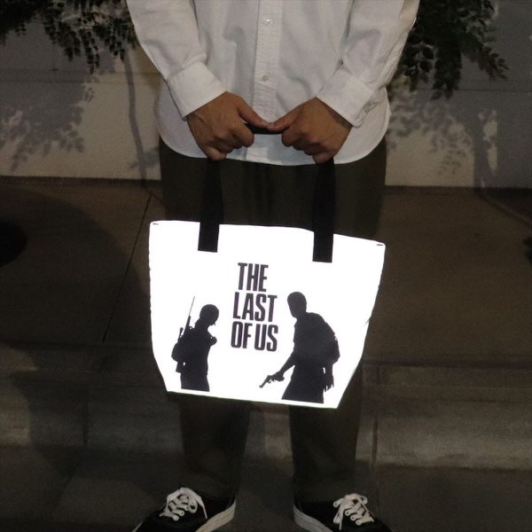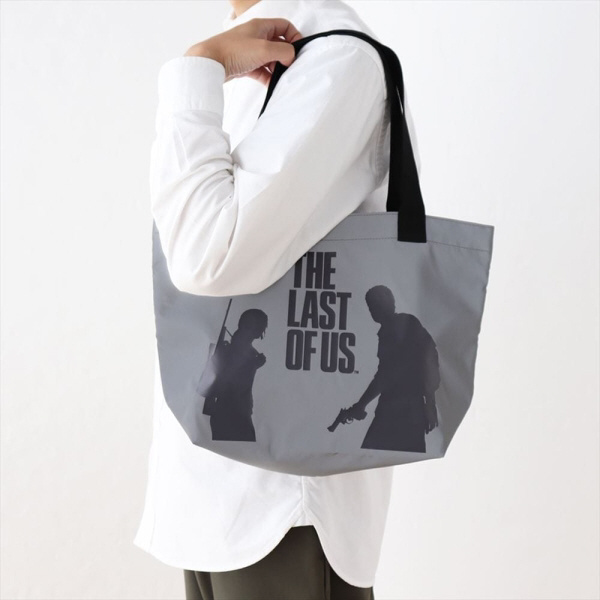 「The Last of Us」シリーズと一目でわかるジョエルとエリーのシルエット、ロゴをプリントしたトートバッグ。