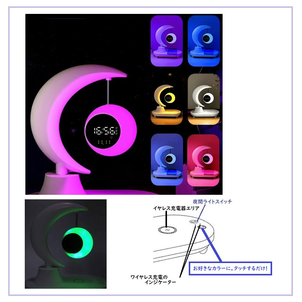 時計機能、スピーカー機能、ワイヤレス充電機能も搭載しています。