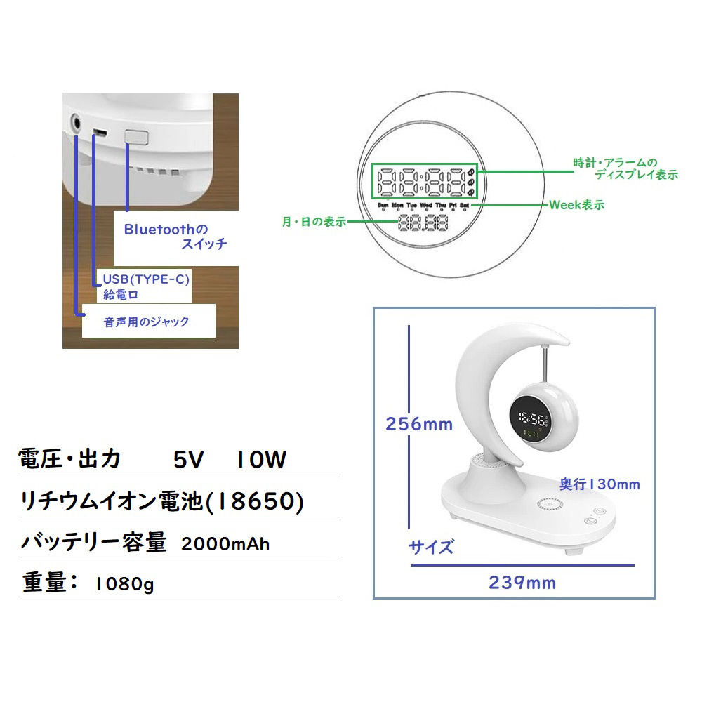 卓上型スタンドライト(ルナライト ワイヤレス充電器・スピーカー機能付き)