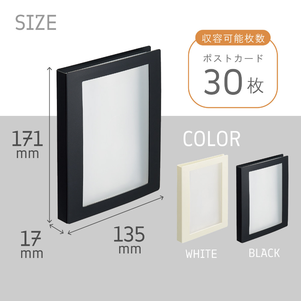 ハガキサイズ(100 × 148mm) と A6サイズ(105 × 148mm)の両方に対応しています。年賀状の補保管にも便利です。