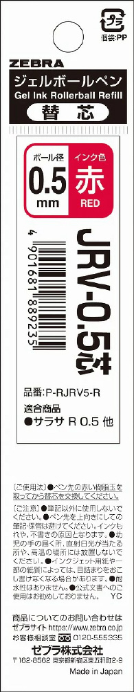 JRV-0.5芯 [0.5mm/ゲルインク] SARASA R(サラサ R) 赤 P-RJRV5-R