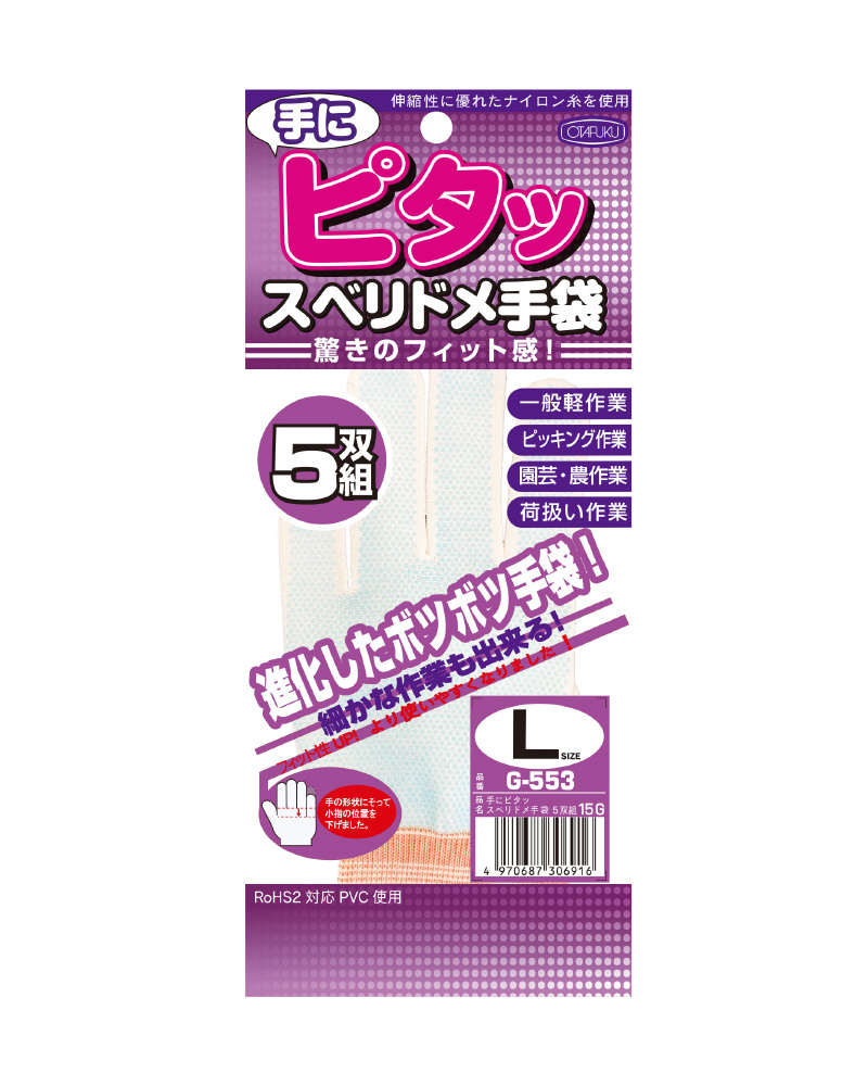 手にピタッスベリ止め手袋5双 L G-553
