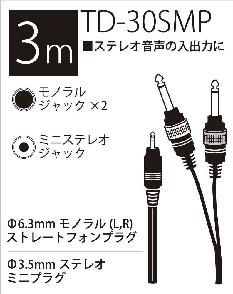TRUE DYNA トゥルーダイナ オーディオ変換用 ラインケーブル TD-30SMP (3m StMini/Phone×2)