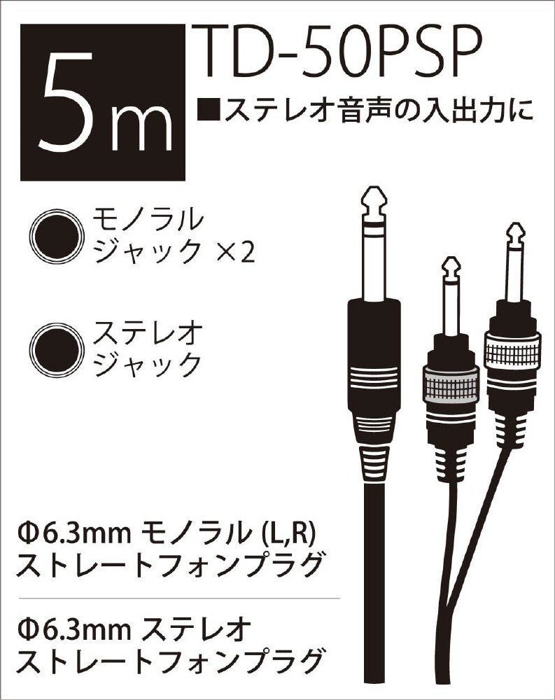 TRUE DYNA トゥルーダイナ オーディオ変換用 ラインケーブル TD-50PSP (5m Phone×2/StPhone)