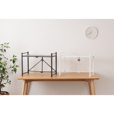 ●折りたたみ可能で、使わない時は省スペースに収納可能なレンジラック。