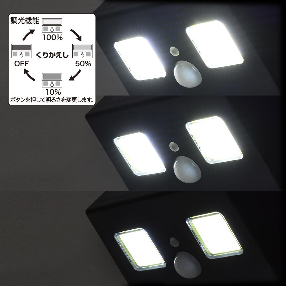 ● 昼は太陽光で充電し、夜は赤外線センサーで人を検知しライトが点灯する、ソーラー発電式人感センサーライト