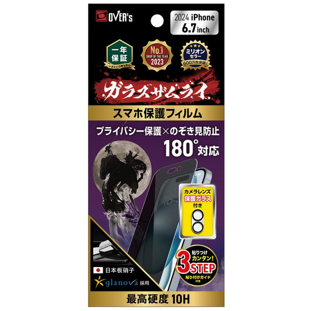 【カメラ保護フィルム付】 iPhone 16 Plus 保護フィルム 覗き見防止 ガラスザムライ クリア GZ-IP1603NH-1