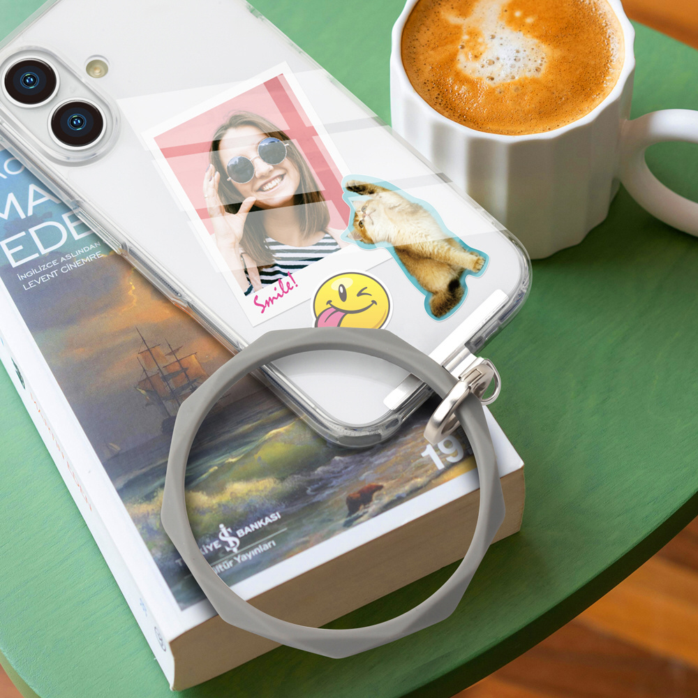 ストラップホルダーは端末やケースに貼り付けしないので、汚れずいつでも付け外しが可能です。