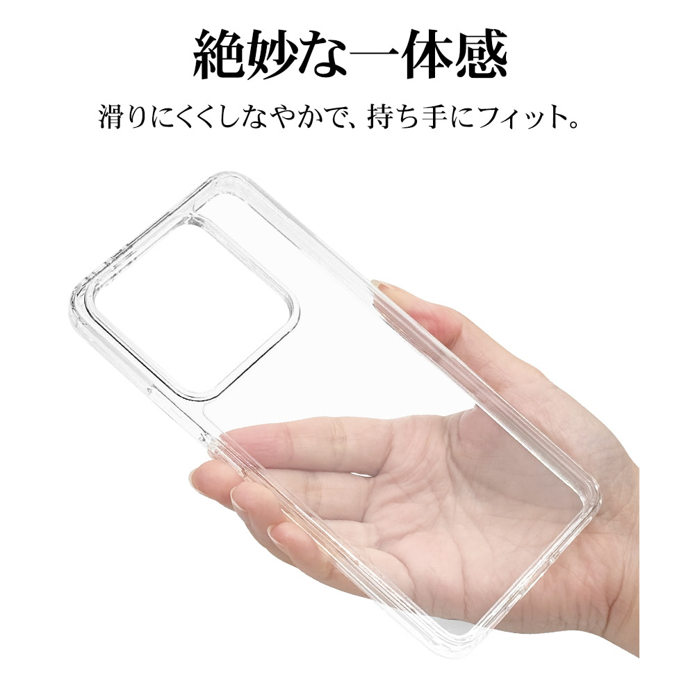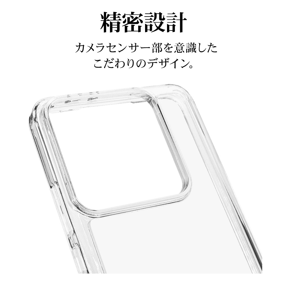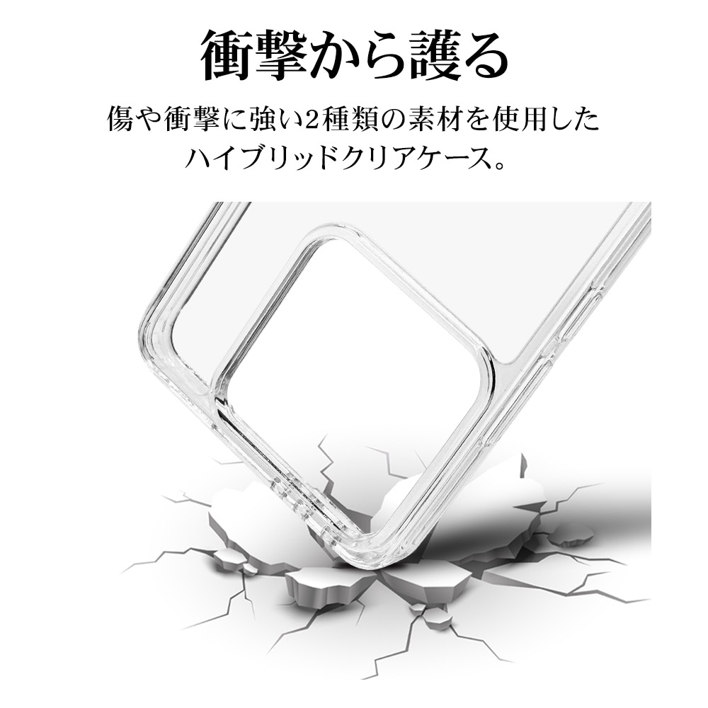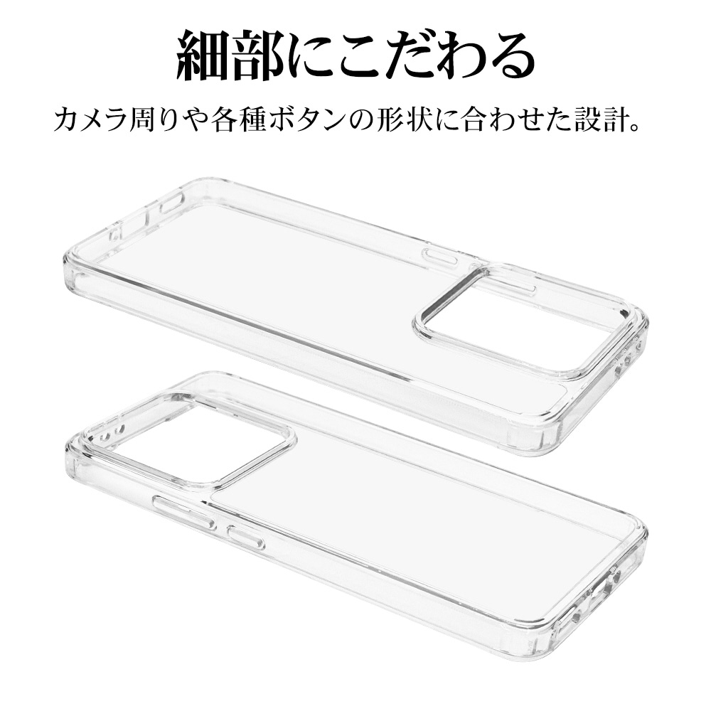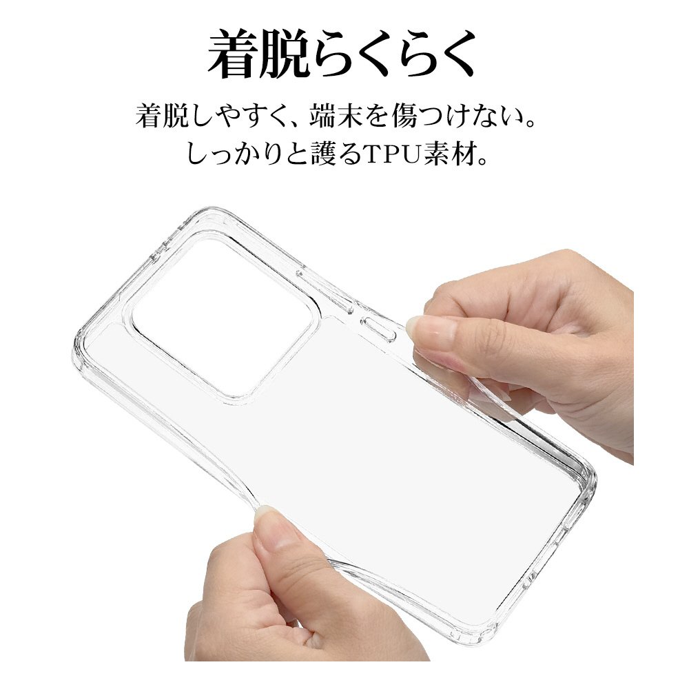 ●側面は弾力と柔軟性を兼ね備えたTPU素材で端末を衝撃から保護。背面は傷に強いポリカーボネート素材を使用しています。※衝撃吸収については、一般的なポリカーボネート製ケースと比較した自社検証結果で、無破損、無故障を保証するものではありません。