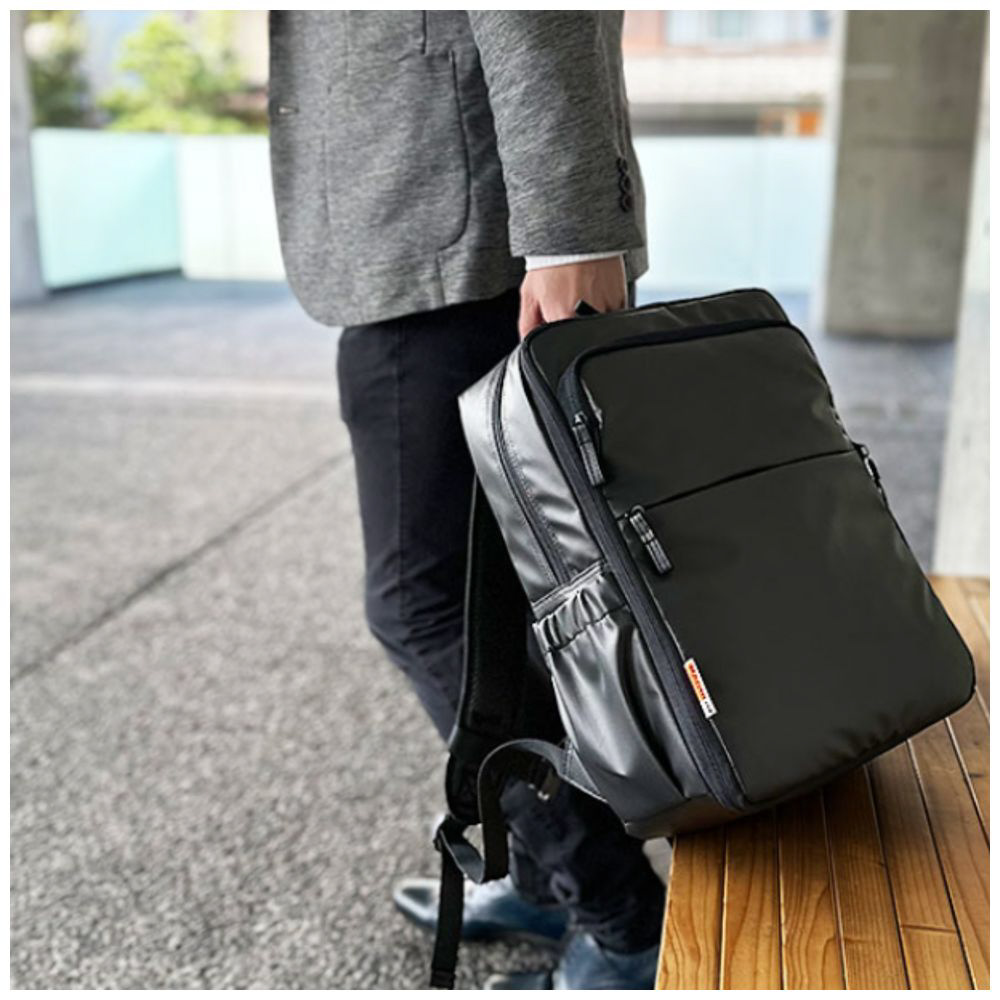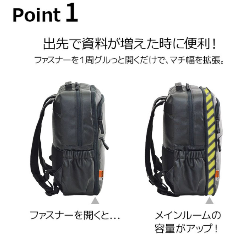 通勤、通学、ジム通いまで、さまざまなシーンで活躍するビジネスリュック。マチ拡張機能により容量を簡単にアップでき、荷物が増える日も安心です。