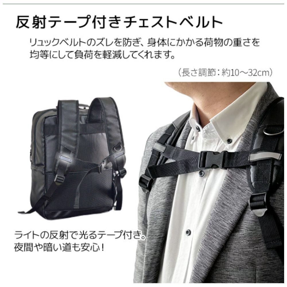 ビジネスリュック ビジネスバッグ ジムバッグ 撥水 軽量 チェストベルト付 [容量:約14(16)リットル] マグナム ブラック 42585
