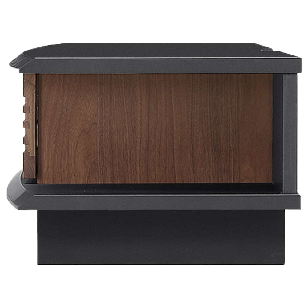 ■天板にはTVコードを通せる配線サクリ付きで、テレビスタンドとの組み合わせの際には、開口部のパーツを外すことでスタンドの支柱がフィットし、壁との間に隙間なく設置できます。