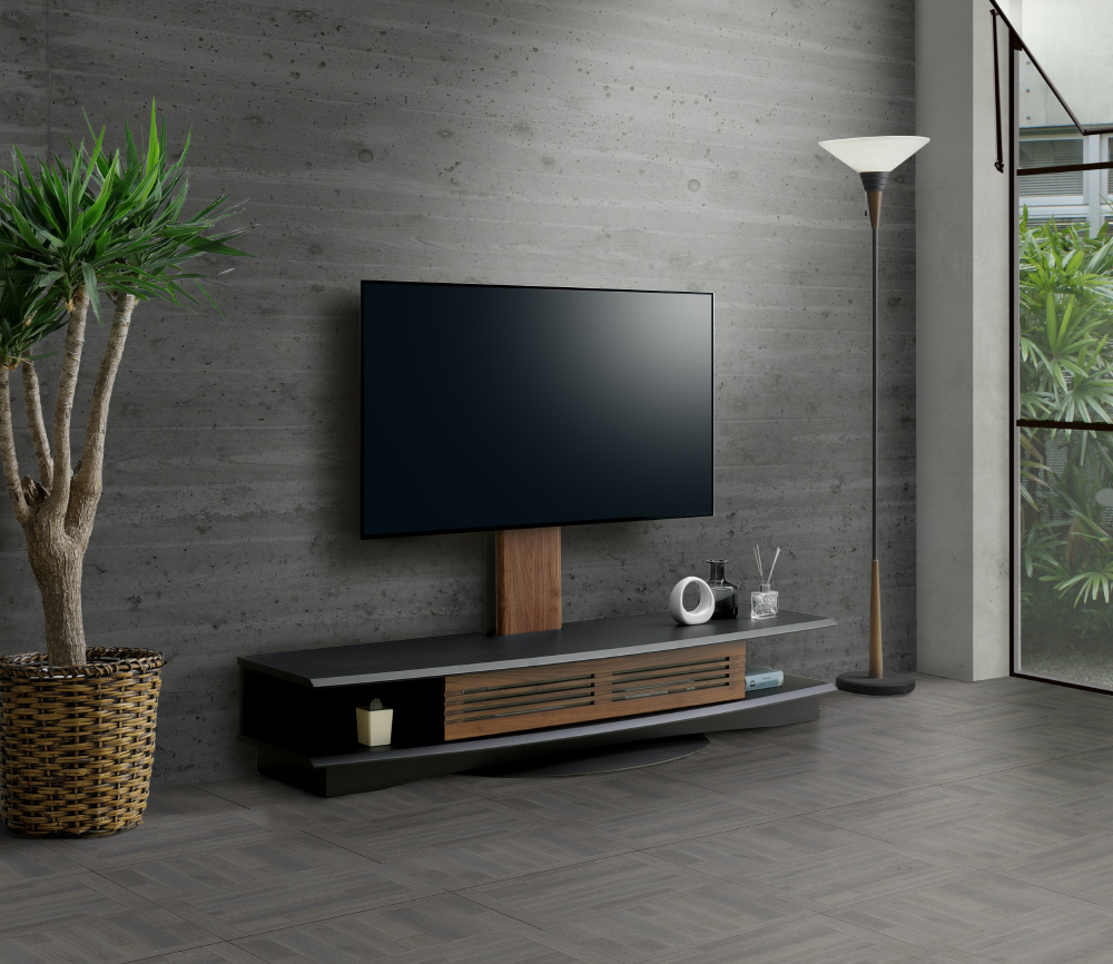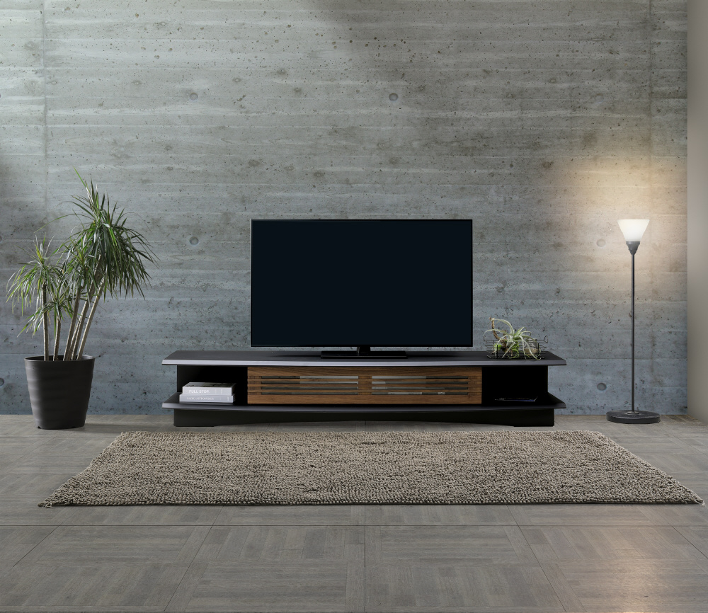 テレビスタンドと組み合わせて壁掛け風に使用でき、単体でローボードとしても使用できます。