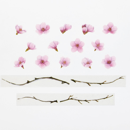 枝に桜を咲かせましょう!目黒にある「郷さくら美術館」と一緒に作ったさくらのステッカーセットです。1枚ずつめくれる河津桜と枝のロールテープの2本セット。組み合わせて貼れば、濃いピンクが印象的な満開の河津桜が作れます
