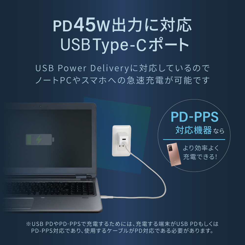 ※USB PDやUSB PD-PPSで充電を行う場合は、端末やケーブルがPD対応またはPD-PPS対応であるかをご確認ください。