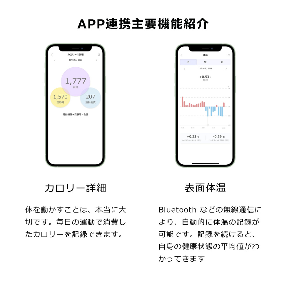 スマートフォンとの連携により、健康データを簡単に管理し、運動記録や睡眠パターンの追跡が容易になります。