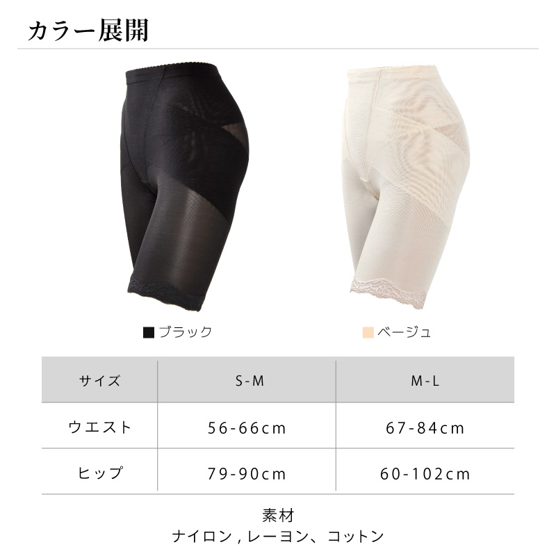 ハイウェスト仕様のロングガードルなので、気になるぽっこりお腹周りから太ももまで、気になる下半身をトータルメイク!