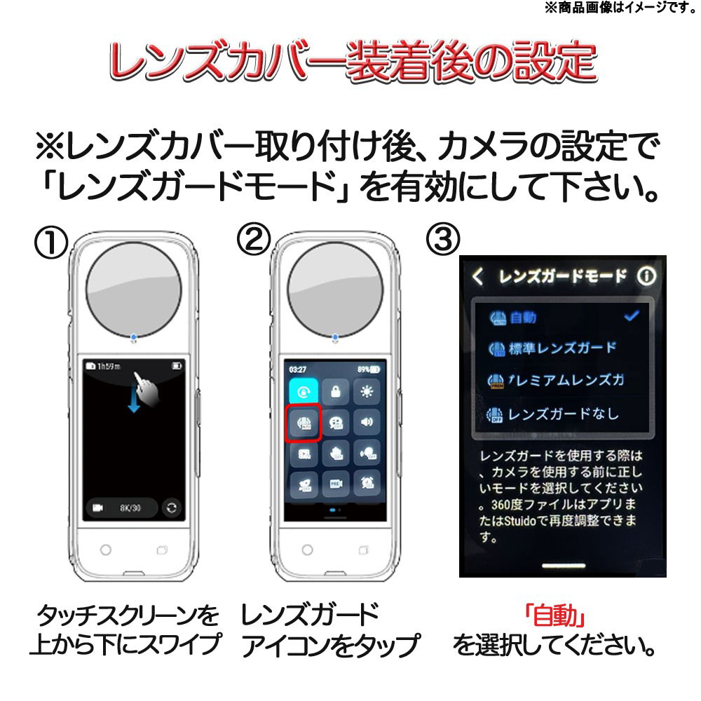 Insta360 X4専用のレンズ保護カバーと装着をサポートする補助カバーのセットです。