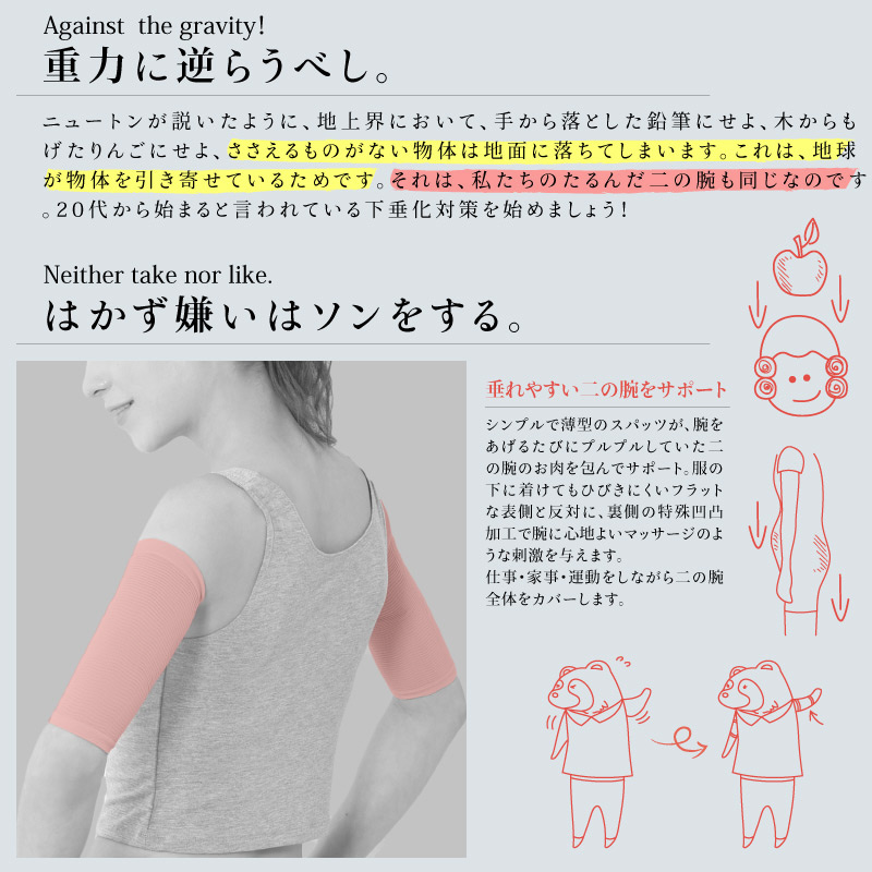 薄型なので普段着の下に着用すればこっそり細腕も!