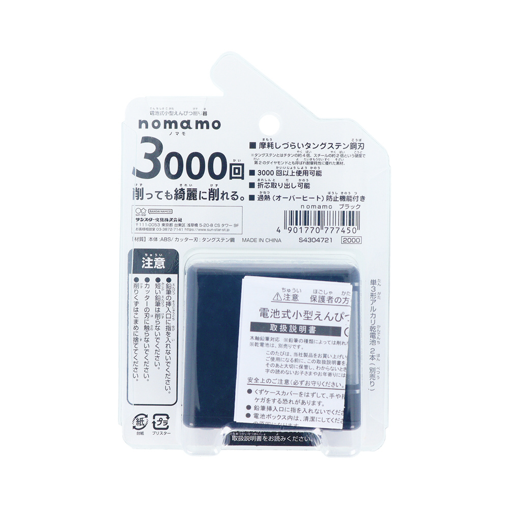 電池式小型えんぴつ削り器、「nomamo」。カラーは、ブラック。