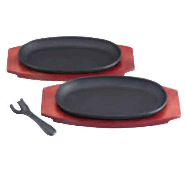 木台とハンドル付きの便利なステーキ皿2枚組です。