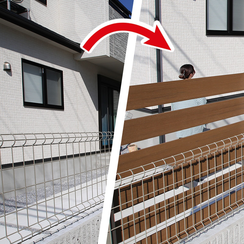 メッシュフェンスに後付けフェンス800(チーク)2枚セット 人工木 着脱式 T-8 旭興進 ASAHIKOUSHIN チーク AKS46741