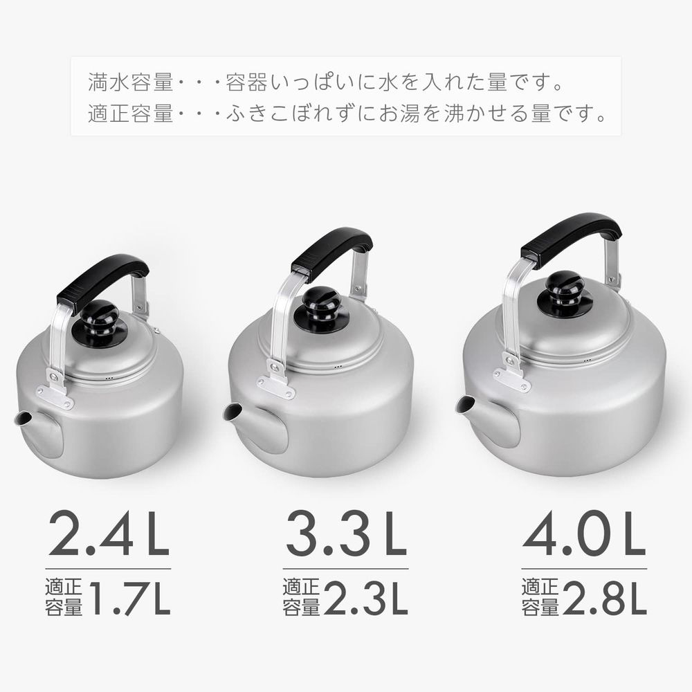 熱伝導率がいいアルミを使用しているため、熱伝導率が良くお湯が早く沸きます。扱いやすい軽量タイプで手軽にサッと使えます。【仕様】満水容量:3.3L●適正容量:2.3L