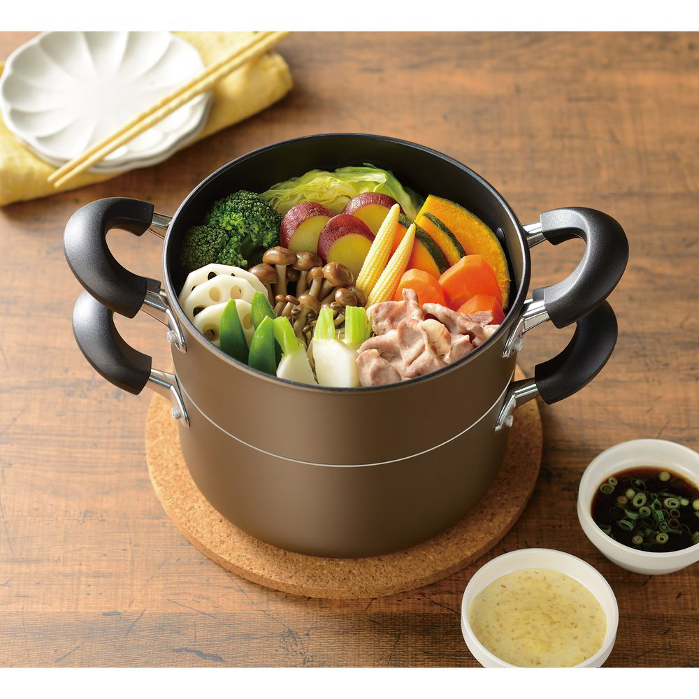 Newおおらか鍋 IH二段蒸し器20cm ブラウン RB-2509