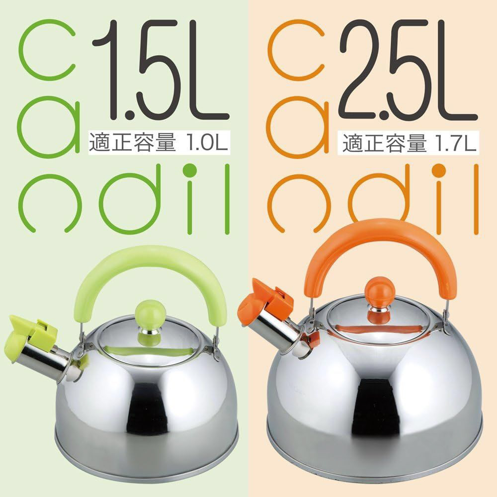 かわいいデザインのやかんです。沸騰を知らせる笛吹き機能付きです。注ぎ口は開閉式です。中も洗いやすく、お手入れしやすい。18−8ステンレスで錆びにくいです。IH・ガス火両対応
