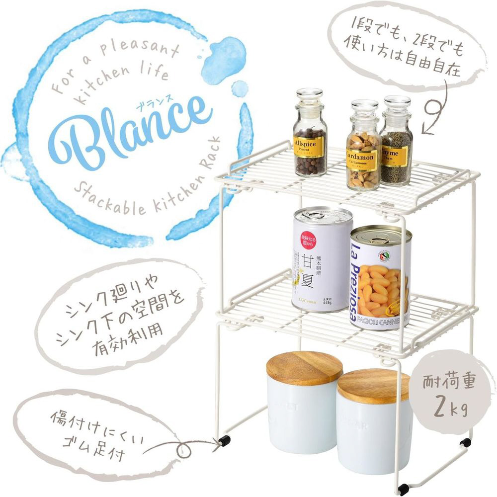シンクまわりをスッキリ収納。1段でも、2段でも使い方は自由自在。シンク周りやシンク下の空間を有効利用。傷付けにくいゴム足付。【仕様】耐荷重: 2kg