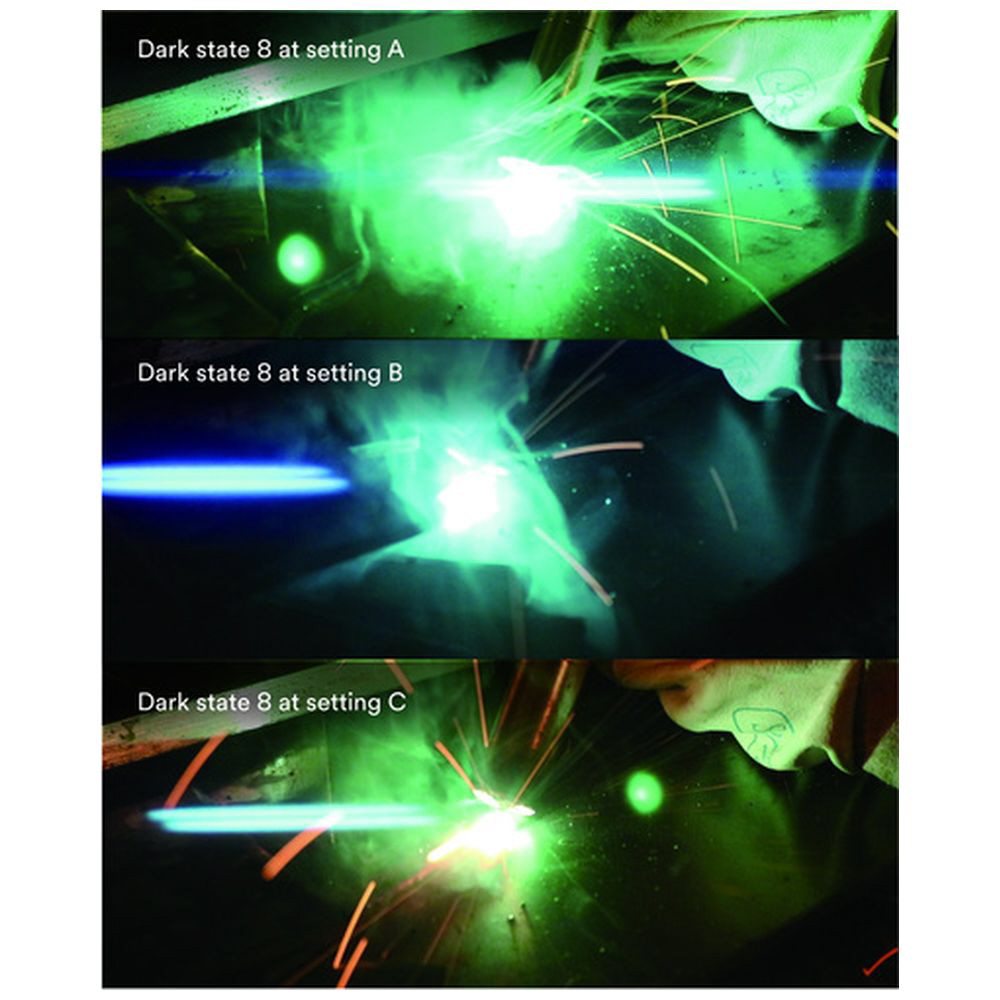 ■溶接シールドをタップするだけで遮光度が変わり、手袋をつけたまま簡単に研磨・切断モードと、溶接作業モードの切り替えが可能です