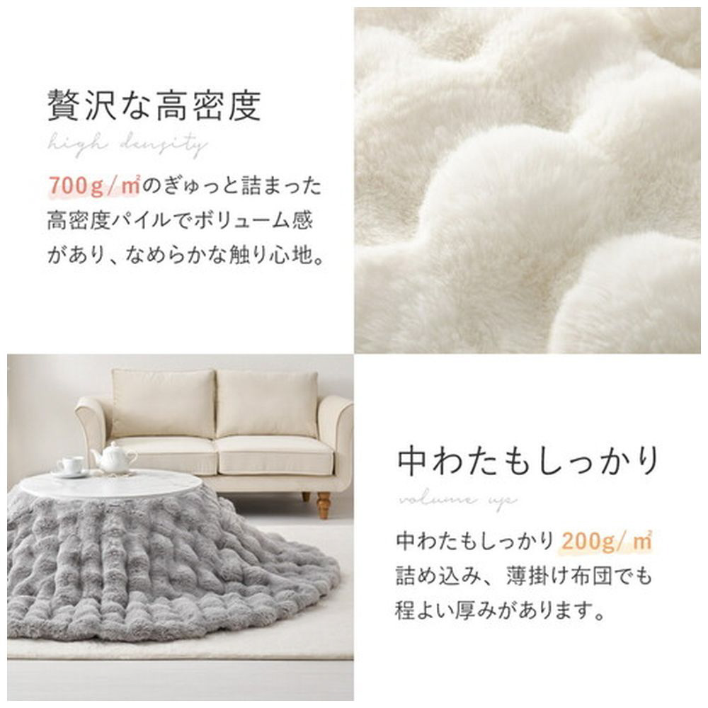 うさぎの毛並みを思わせる、なめらかでふわふわとした肌触りのこたつ布団です。