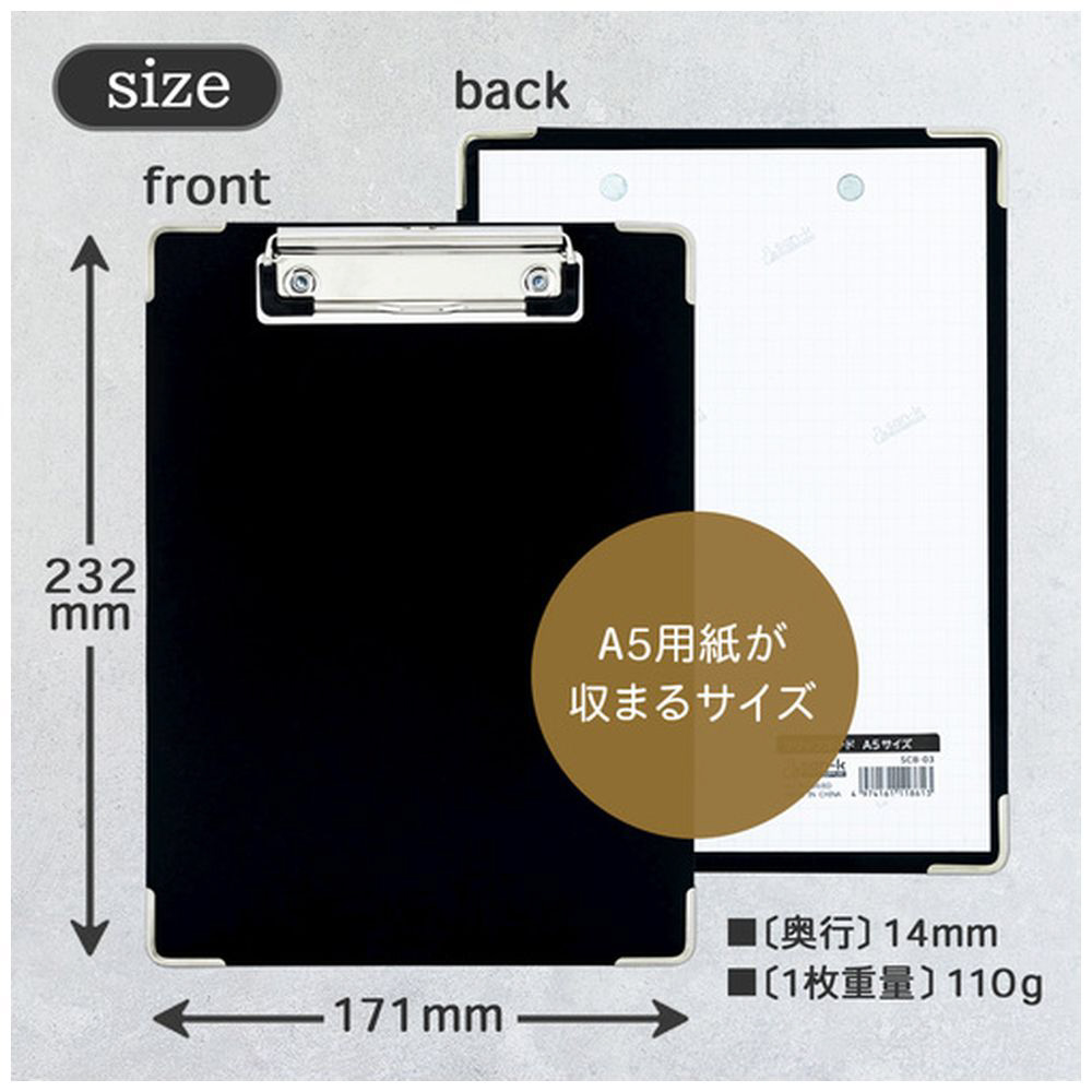 クリップボード A5サイズ 黒 SCB-03