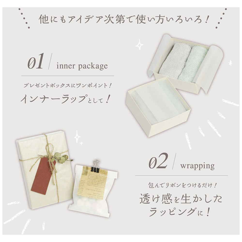 半透明の質感を生かしたラッピング、または緩衝材や工作などにお使いいただけます。