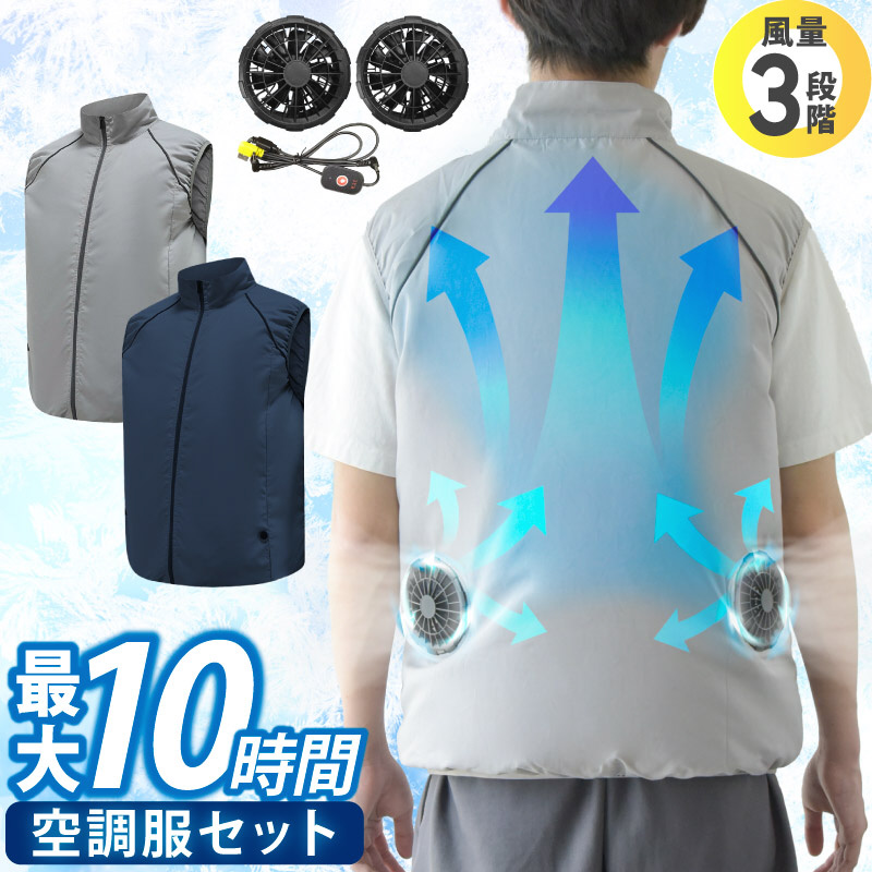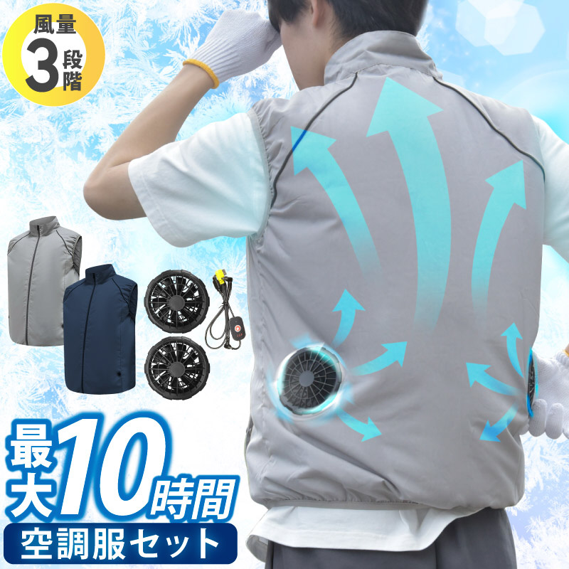 暑い日の屋外作業を快適に!2つのファンで一気に風を巡らせ、熱いカラダを速攻冷却!熱中症予防や作業の効率化に。