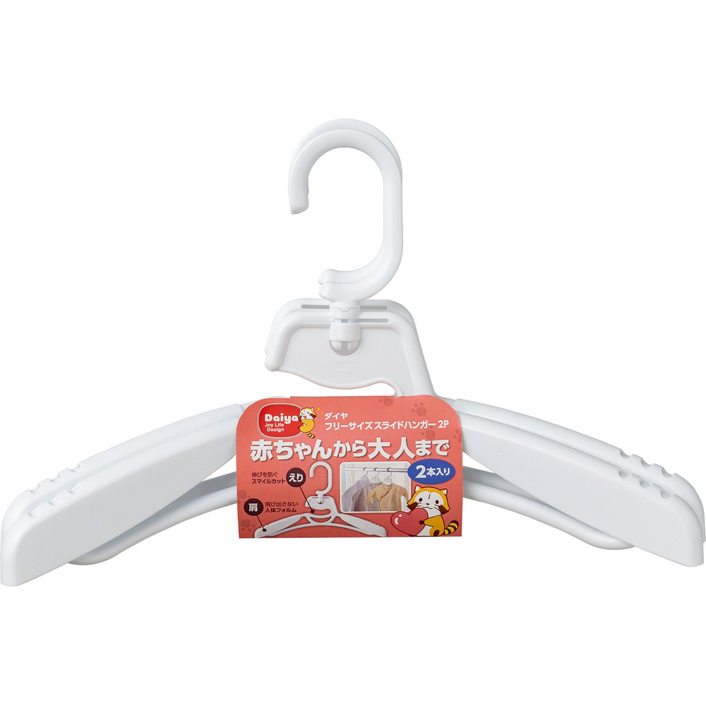 赤ちゃんから大人まで肩幅に合わせてスライド調節できるハンガー。