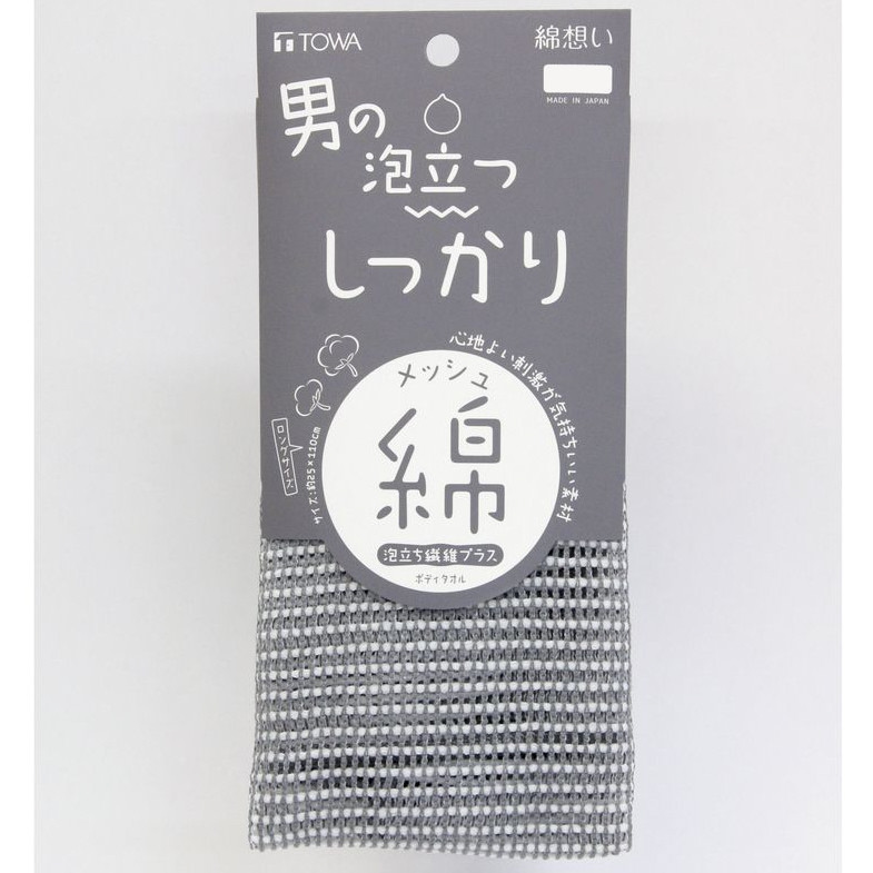 綿想い男の泡立つしっかりロング綿タオル グレー 34641